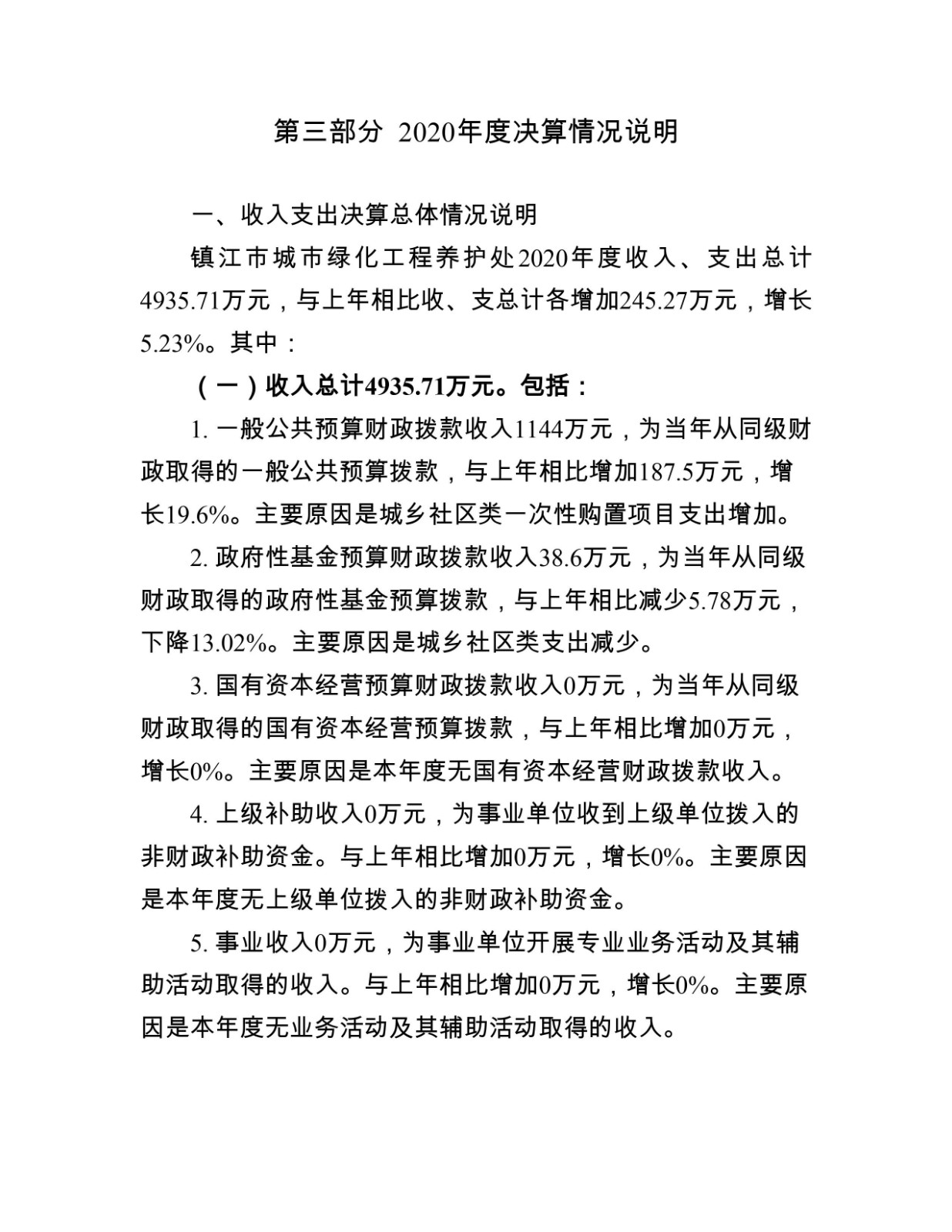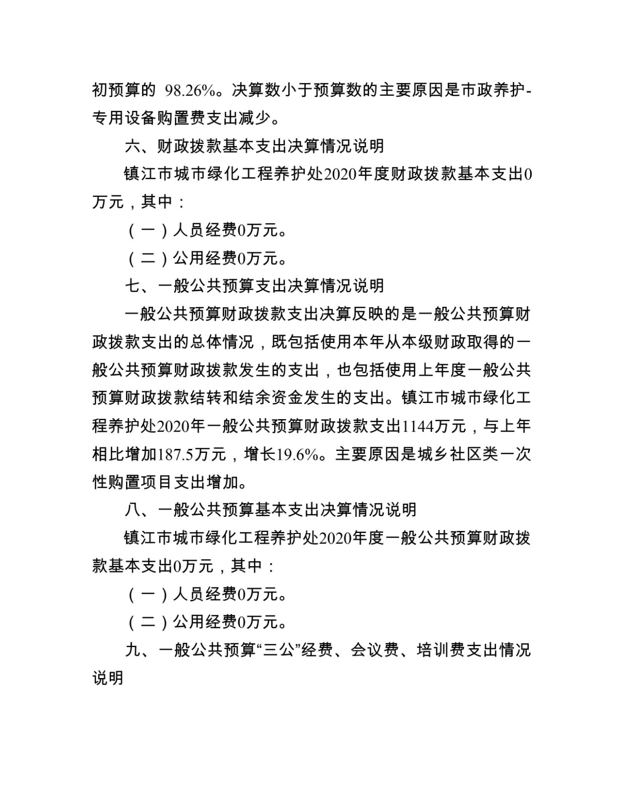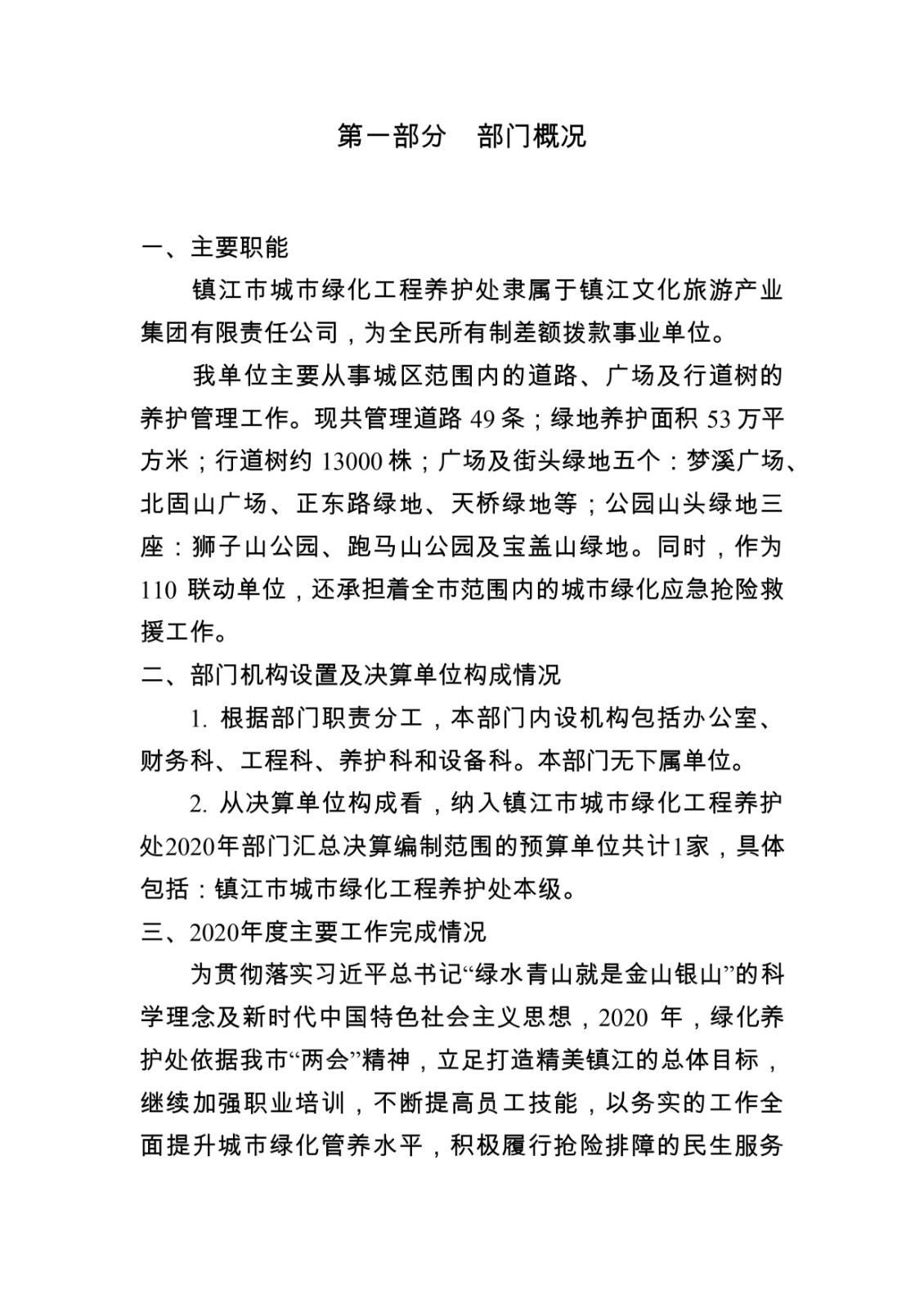 镇江市城市绿化工程养护处2020年度决算信息公开