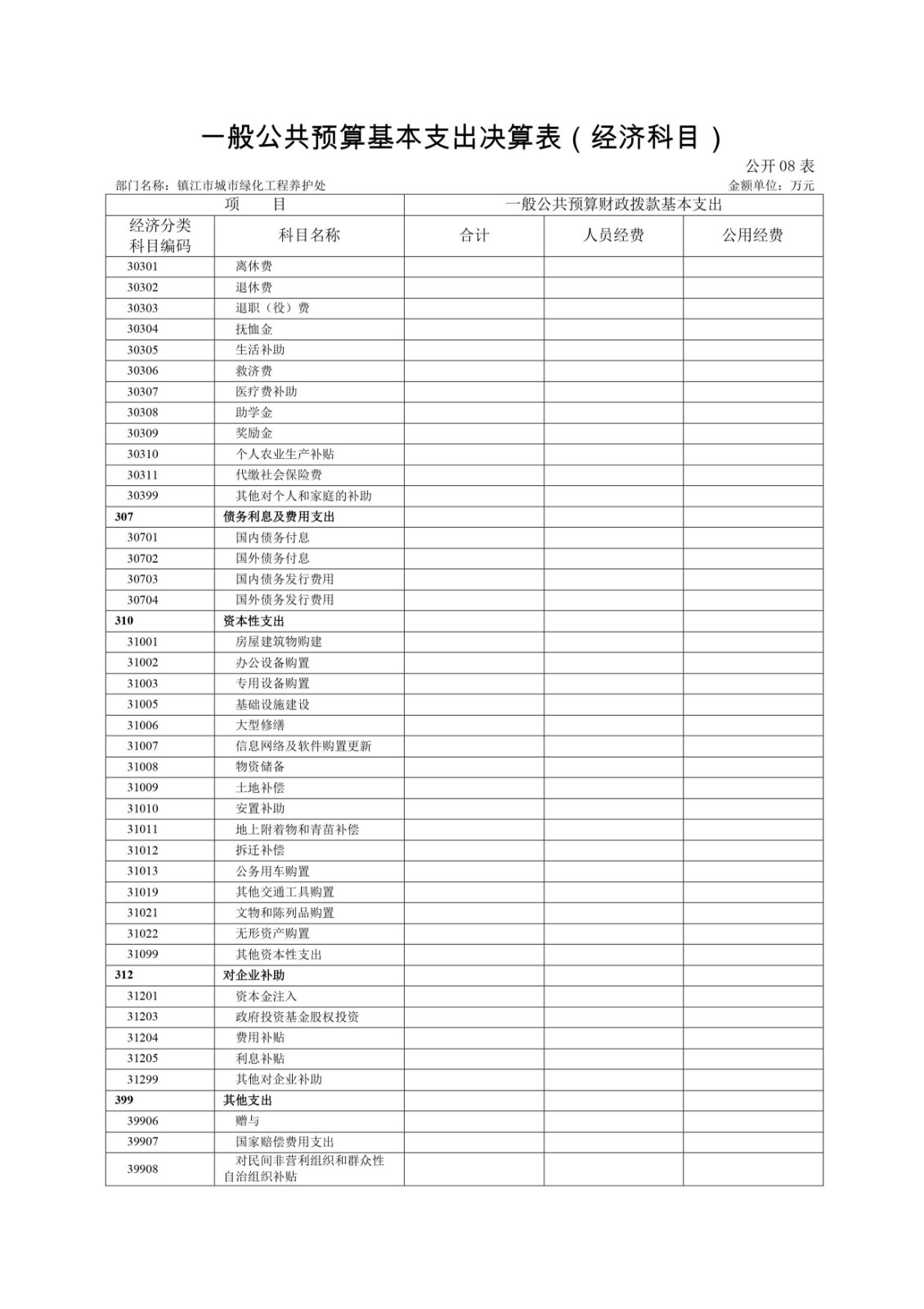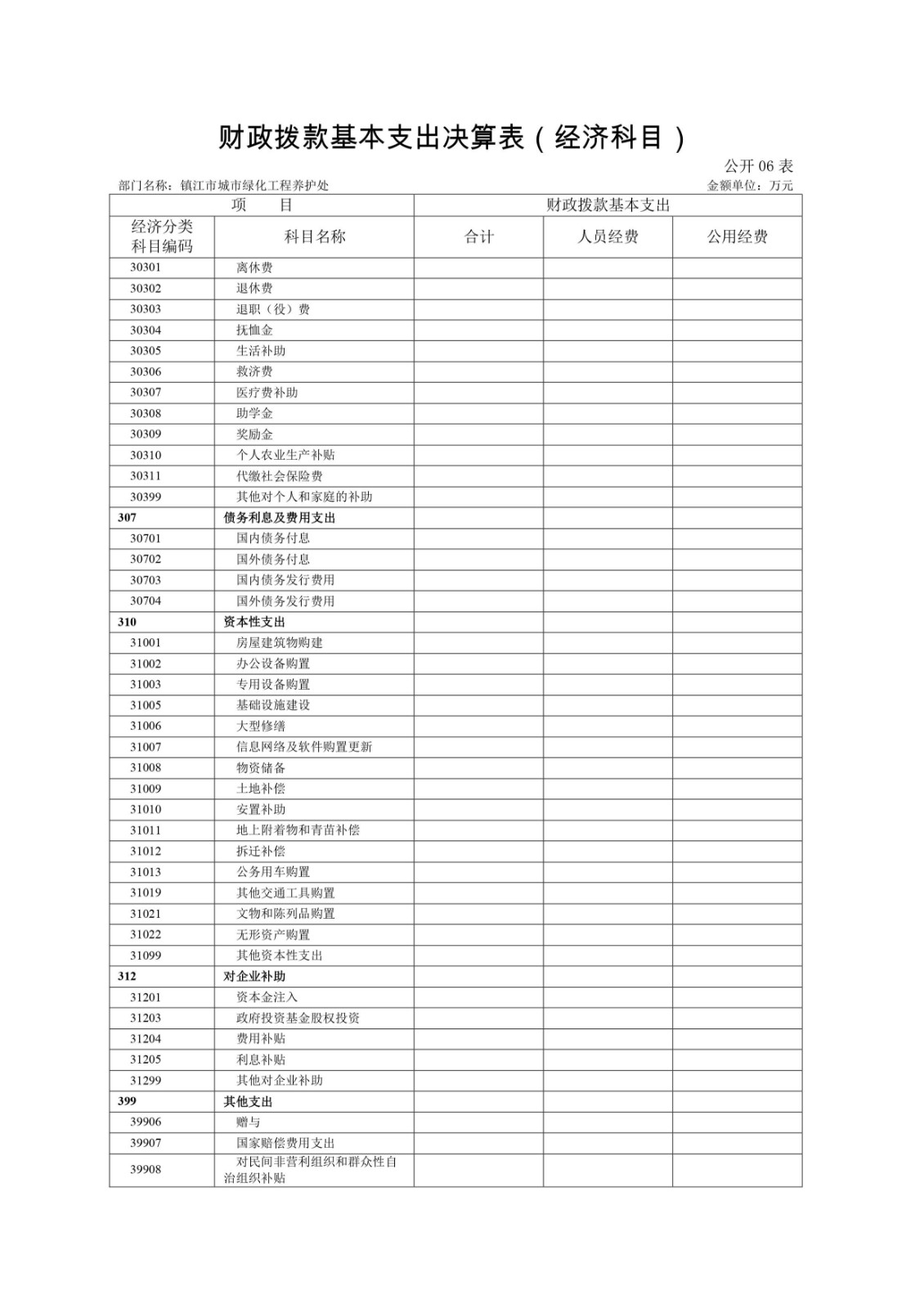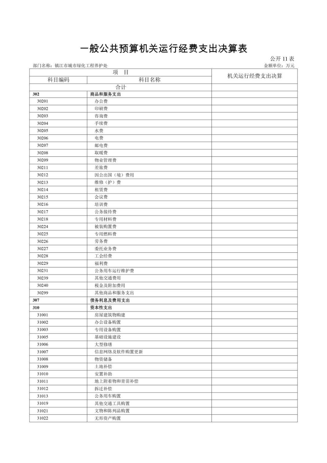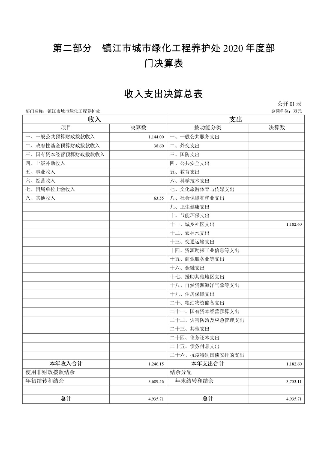 镇江市城市绿化工程养护处2020年度决算信息公开