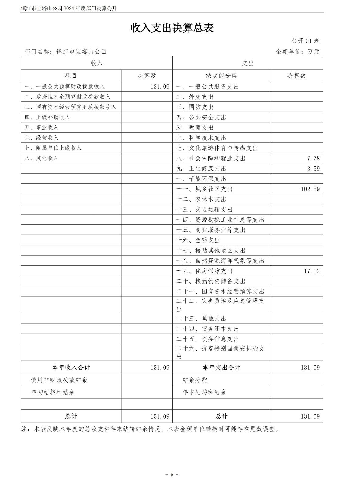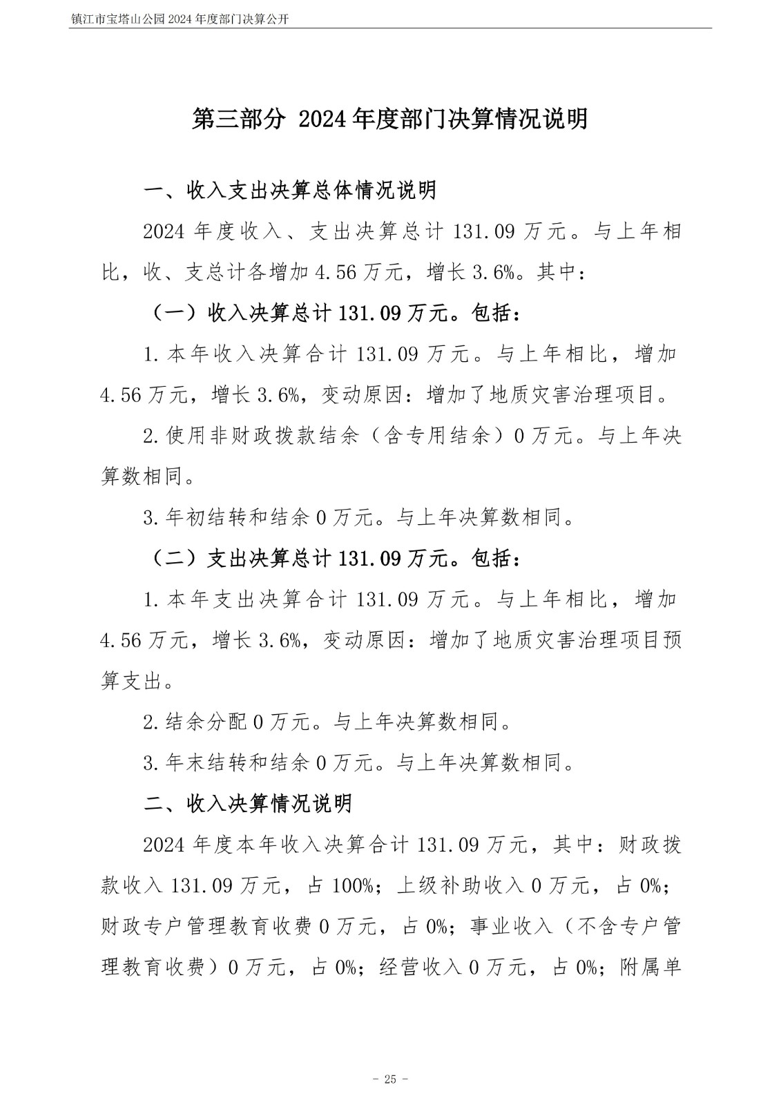 镇江市宝塔山公园2024年度部门决算公开